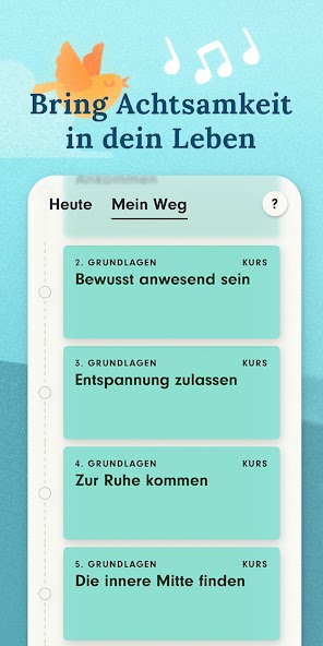Nur wenige von uns gelingt es, Meditation zu einem Teil des täglichen Lebens zu machen. Mit 7Mind wird das Üben von Achtsamkeit so einfach und zugänglich wie möglich. Alle geführten Meditationen sind speziell entwickelt, um das Selbstvertrauen und das Selbstwert durch Atemübungen, Bestätigungen und Visualisierungen zu steigern. Das Wiederholen von Affirmationen trägt dazu bei, Raum für positives Denken zu schaffen und negative automatische Gehirnreaktionen zu verringern. Ein personalisierter Coach -Dialog führt Sie während Ihrer Reise und hilft Ihnen dabei, die Praxis aufrechtzuerhalten!